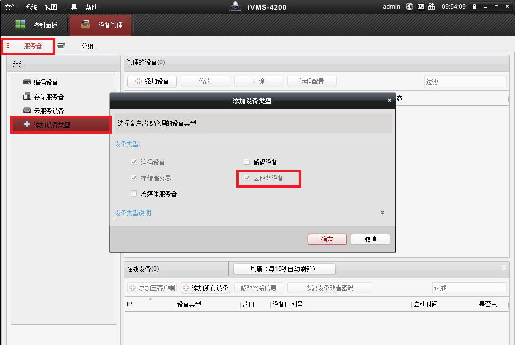 b. 進(jìn)入“設(shè)備管理”界面后,選擇“服務(wù)器”,使用鼠標(biāo)左鍵單擊“添加設(shè)備類型”,